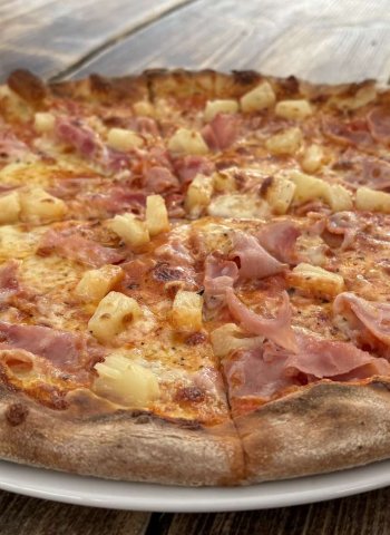 Rajčatový základ, šunka, ananas, strouhaná mozzarella